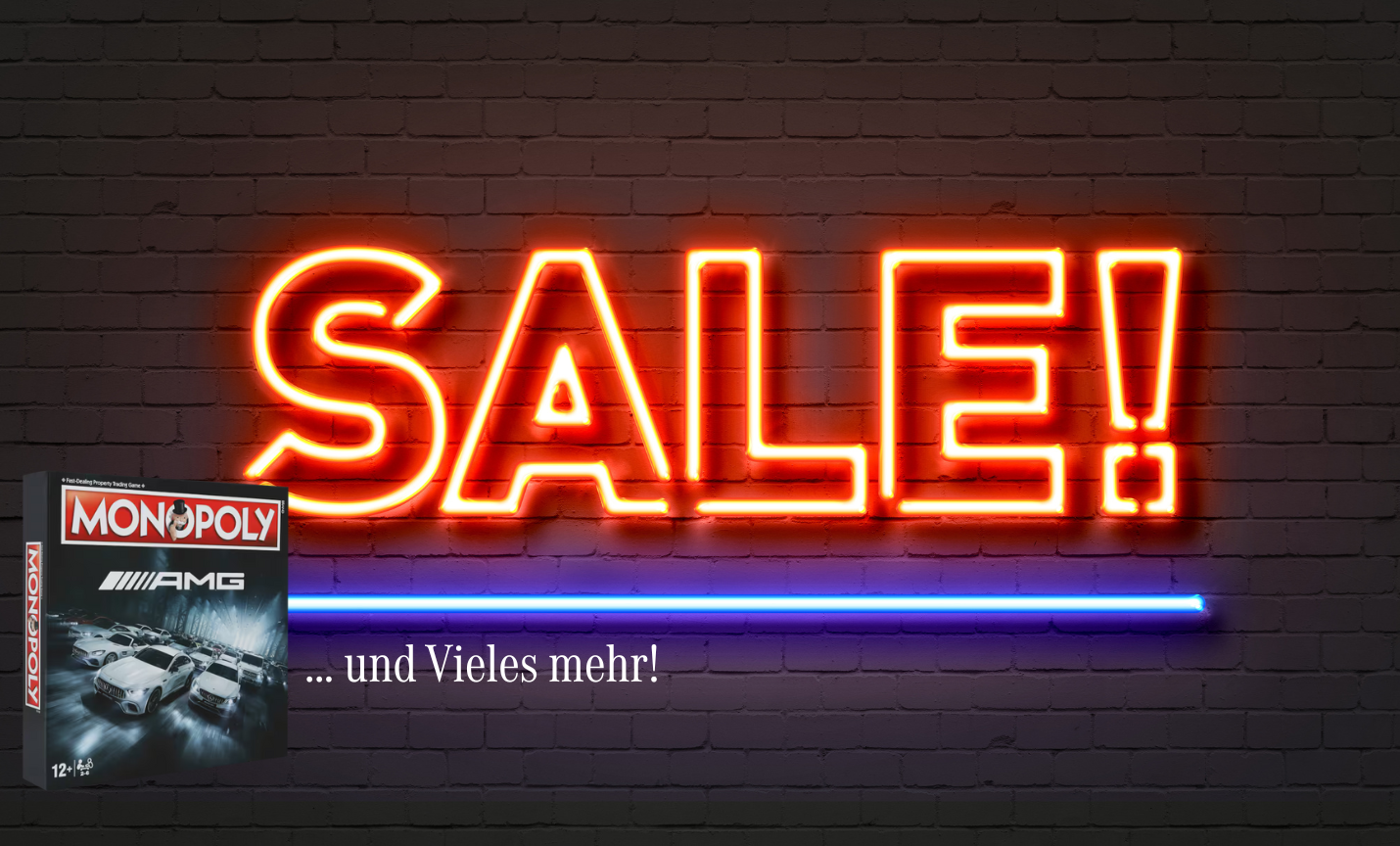 B-WareBrettspielklassiker neu aufgelegt: Das englischsprachige, individualisierte Monopoly verspricht mit einem Spielfeld im Mercedes-AMG Design sowie sechs speziell entwickelten Spielfiguren Spielspaß in der Mercedes-AMG Welt. Garagen aus der Boxengasse sowie Rennstrecken statt Häuser und Hotels machen das kurzweilige Vergnügen perfekt. Wie das original Monopoly Spiel ist auch die Mercedes-AMG Version für Spieler ab 12 Jahren geeignet. Das Spiel befindet sich in einem extra gestalteten Karton und eignet sich auch optimal als Geschenk.  Aufgrund der beschädigten Verpackung wird dieses Spiel zum stark reduzierten Preis angeboten. Die Verpackung weist eine Beschädigung an der Kante der Kartonage auf. - individualisiertes Monopoly für Mercedes-AMG - das Spiel ist in leicht verständlichem Englisch gehalten - eigenes Spielfeld im Mercedes-AMG Design - geeignet ab 12 Jahren
